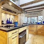 Die Sentio Chalet hat eine voll ausgestattete Küchenzeile mit Küchenutensilien.
